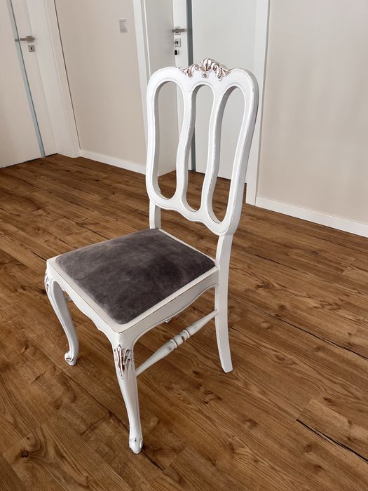 4 krzesła welur szare ,biale nogi