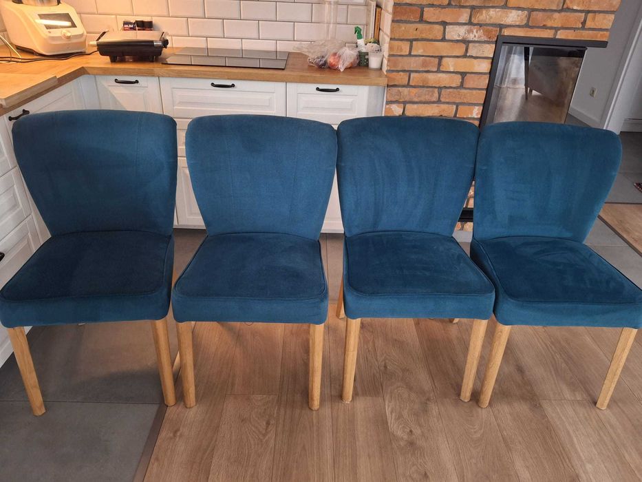 Cztery turkusowe krzesła fotele