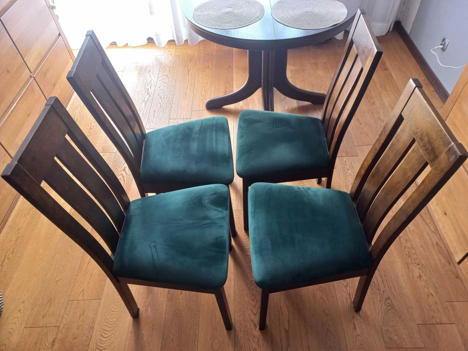 drewniane krzesła z odnowionym welurowym siedziskiem  sztuk4