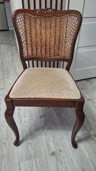 Stylowe drewniane krzesło z rattanowym oparciem