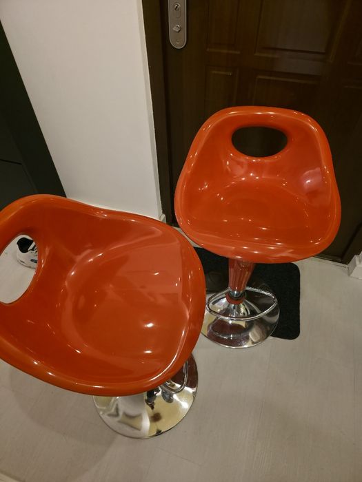 Krzesła barowe, kuchenne, pomarańczowe, 2 sztuki