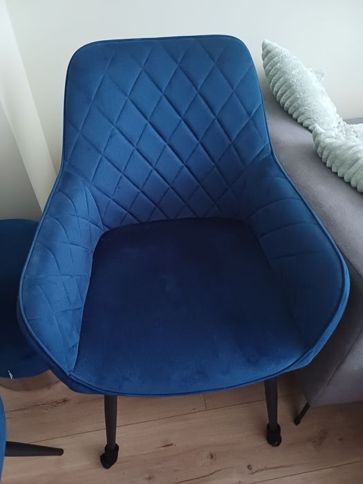 4 krzesła hokery zamsz granatowy