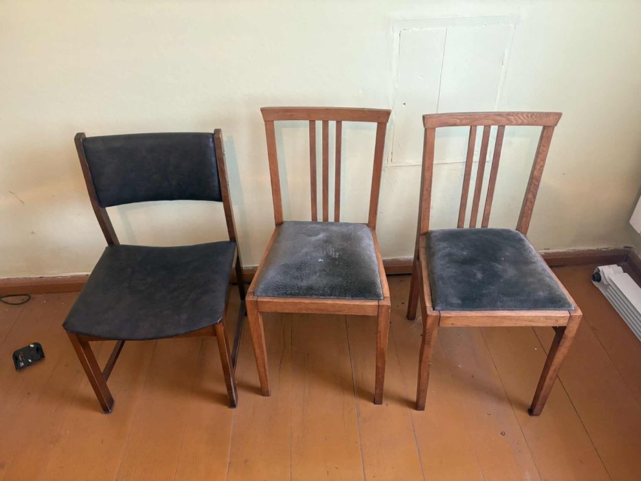 Dwa krzesła ze zniszczoną tapicerką