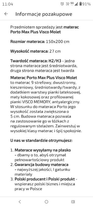 Materac 150x200x27 plus gratis