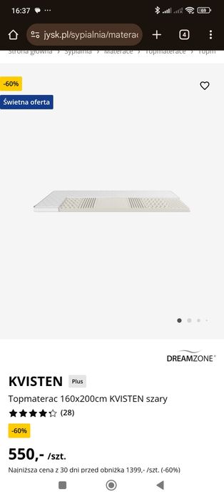 Topper nakładka na materac jysk Kvisten 160 x 200