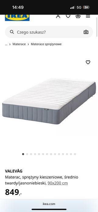 Materac valevag 90x200 nowy ikea średnio twardy