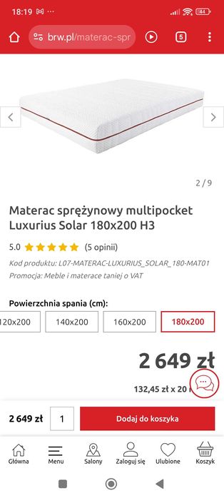 Sprzedam materac nowy 180x200