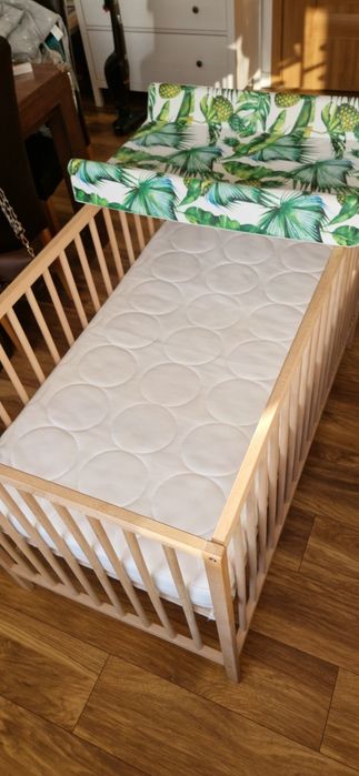 Zestaw. SKÖNAST- materac piankowy do łóżeczka,  z ochraniaczem, Ikea.