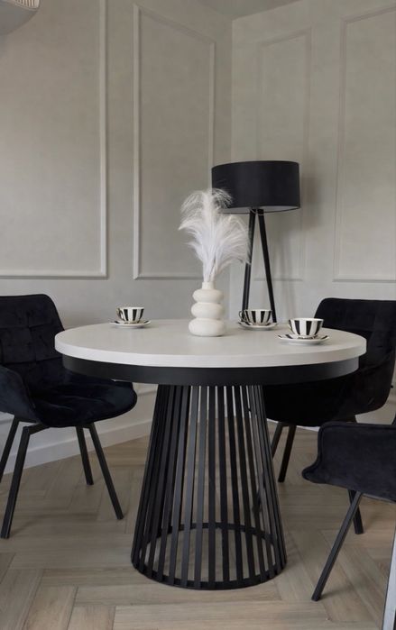 stół okrągły z krzesłami w Meble