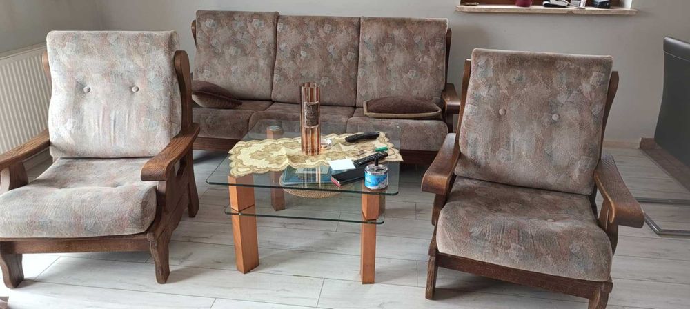 Komplet wypoczynkowy z litego drewna ( dąb )