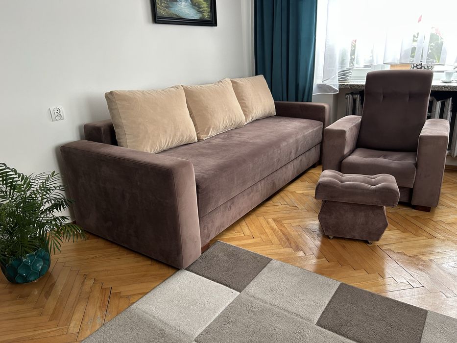Kanapa z 2 fotelami + 1 pufa