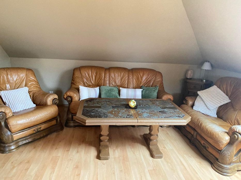 Zestaw Wypoczynkowy skórzany + ława