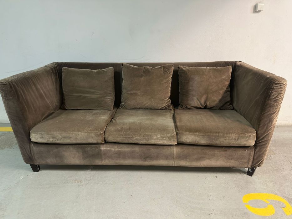 Sofa włoska Bonaldo Lovy 200 cm welur zieleń nóżki złote RABAT - 55 %