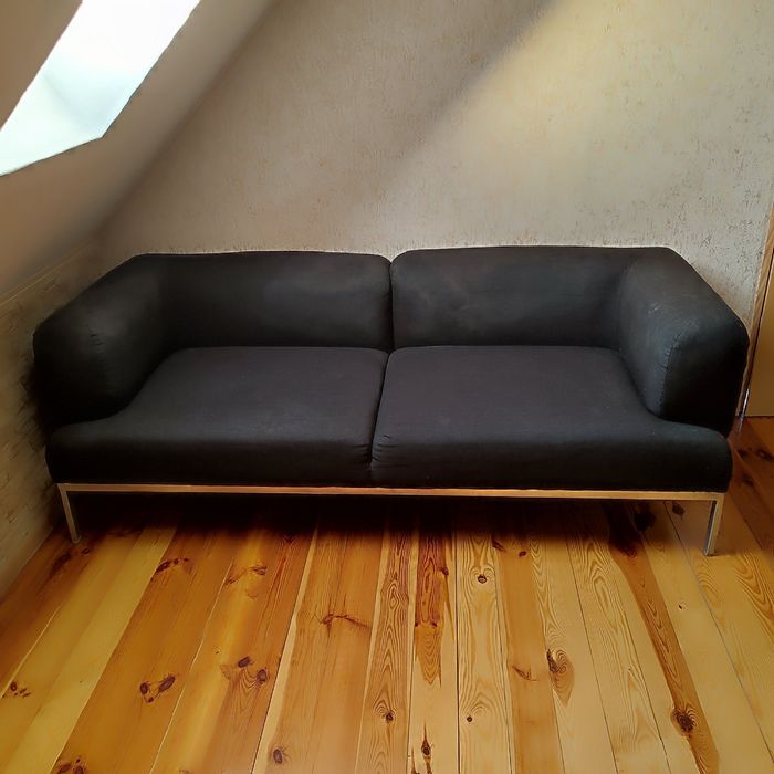 Sofa czarna skóra desing Corbusier LC3 uszkodzona