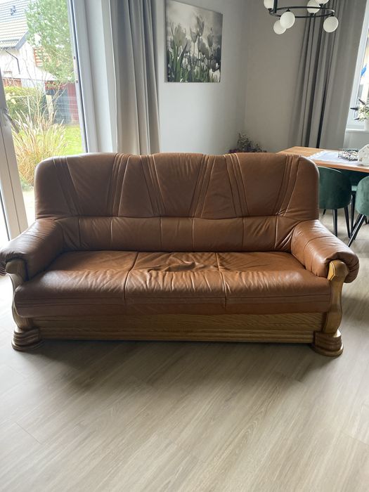 Wypoczynek skórzany z litego dębu