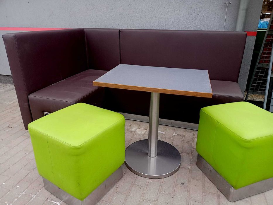 komplet narożnik + 2x puf + stolik kawowy