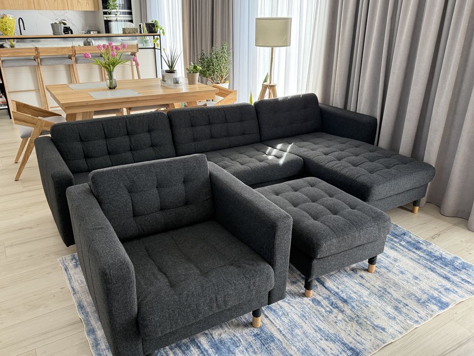 Komplet IKEA LANDSKRONA: sofa 4-os  fotel podnóżek jak nowe Łódź