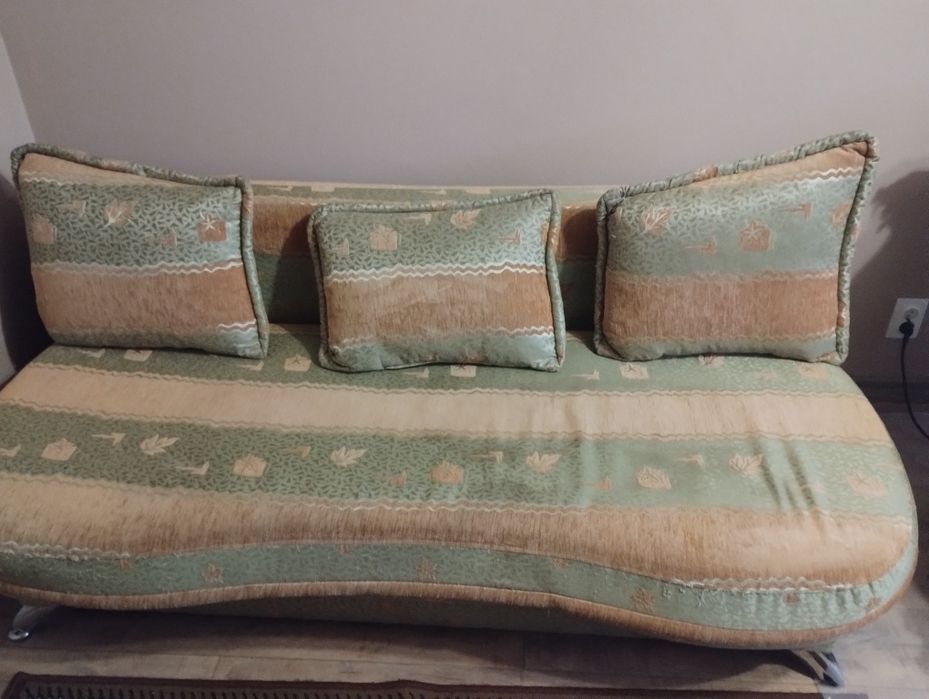 Sofa rozkładana z trzema poduszkami
