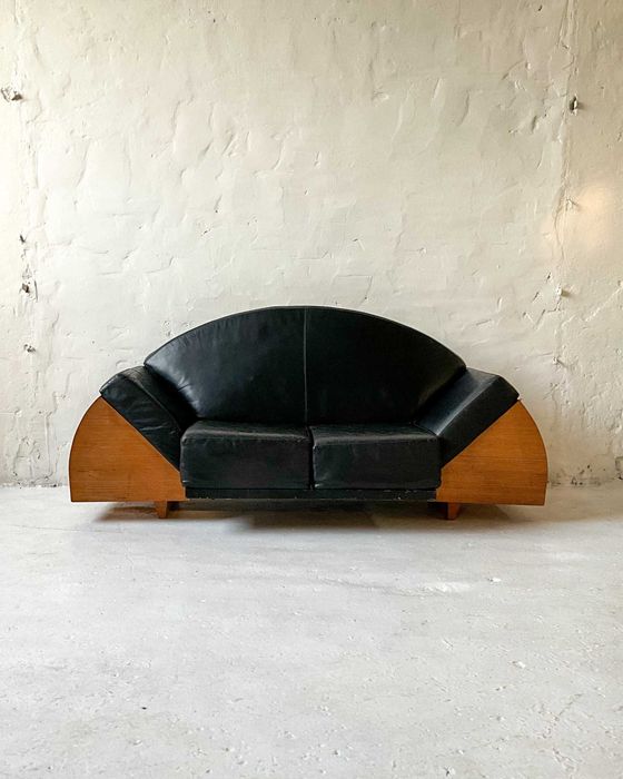 Kanapa skórzana czarna vintage artdeco