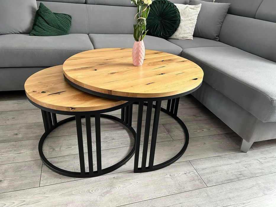Stoliki kawowe DĘBOWE – styl LOFT / INDUSTRIAL – okrągłe 60 i 80 cm