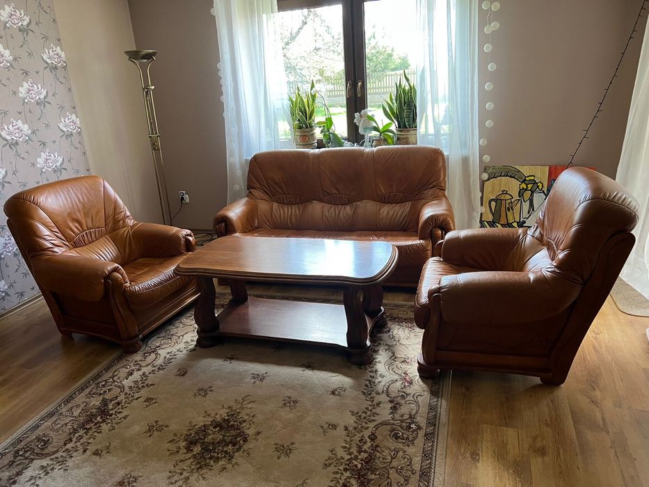 Skórzany komplet kanapa i fotele