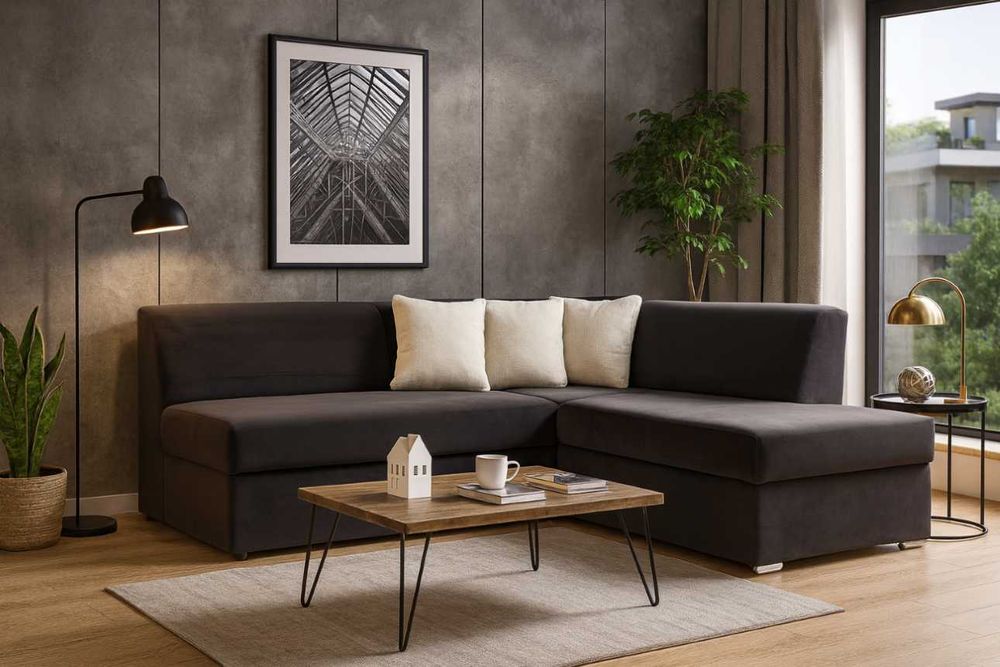 Prosta rogówka funkcjonalny narożnik z funkcją spania minimalistyczny