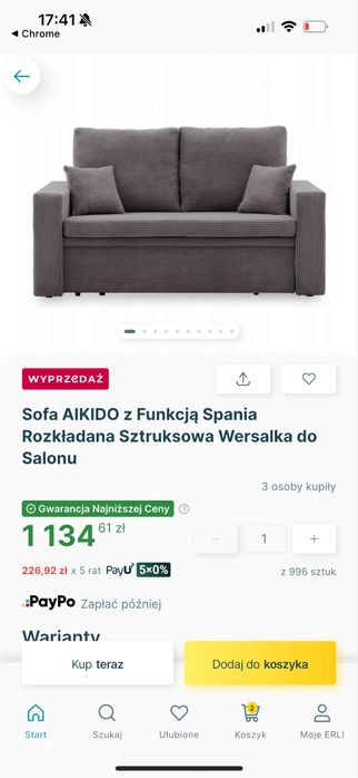 Sofa rozkładana z funkcją spania