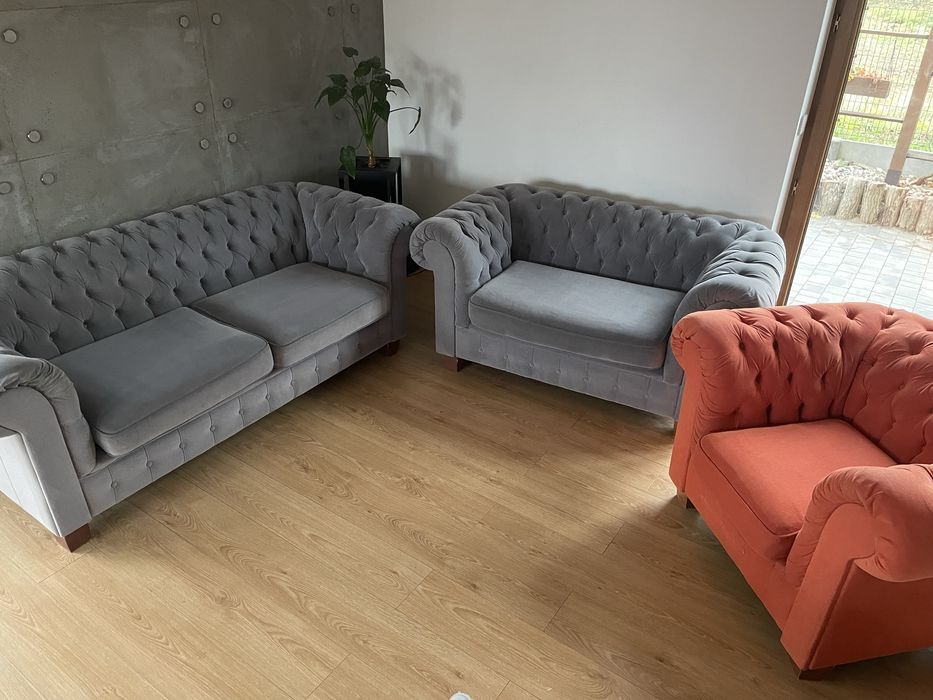 PRZEPIĘKNY Exkluzywny komplet chesterfield sofa + fotel Quenn Anne :)