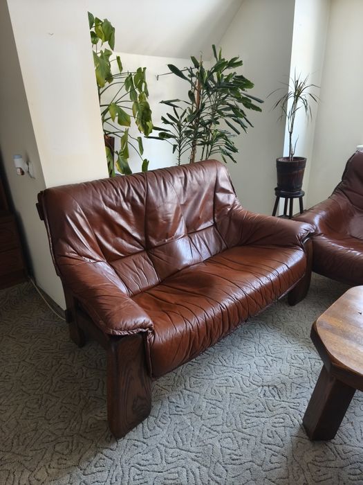 Kanapa plus dwa fotele - skóra naturalna