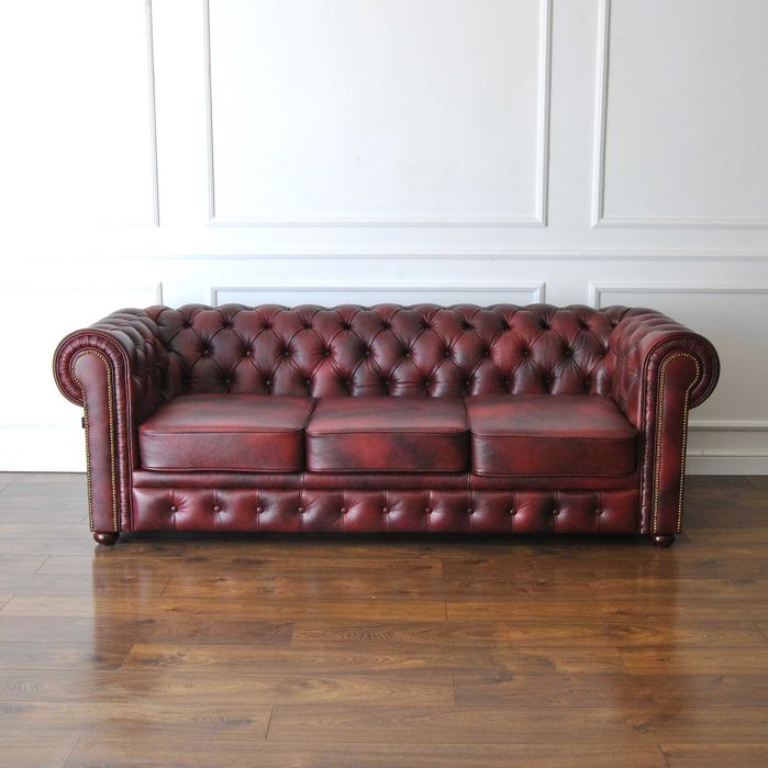 Sofa pikowana chesterfield skórzana 3,5 os. 235cm kanapa skóra