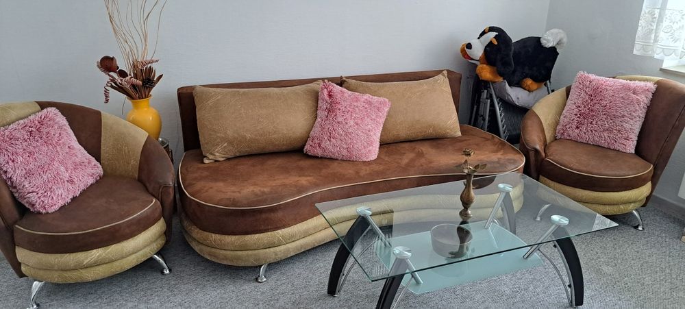 Kanapa z funkcją spania, dwa fotele plus ława