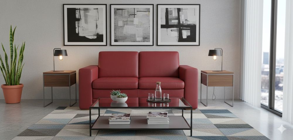 Komplet 2x  Kanapa(sofa) Skórzana Naturalna Czerwona (185cm i 155cm)