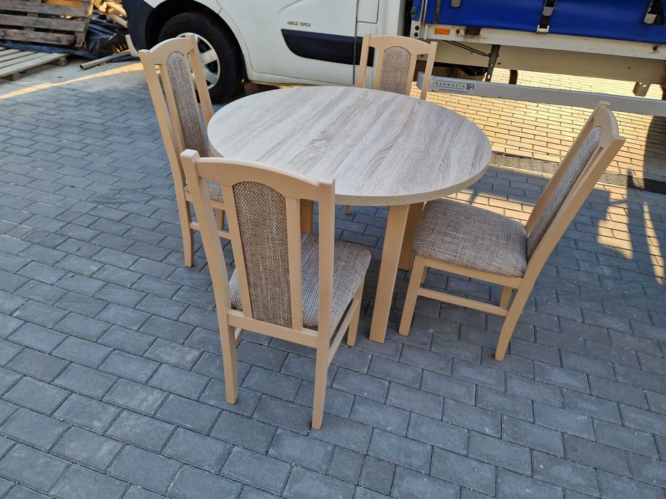 Stół okrągły rozkładany + 4 krzesła , sonoma + cappuccino , od ręki