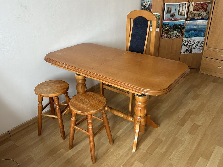 Stół drewniany+krzesła i taborety