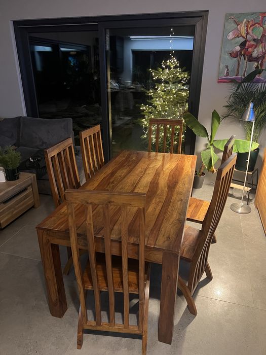 Komplet stol z krzesłami drewno egzotyczne