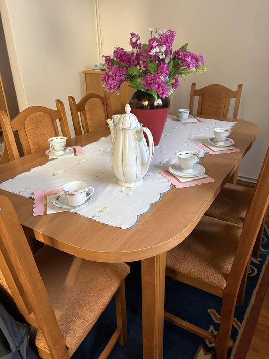 Stół drewniany rozkladany + 6 krzeseł