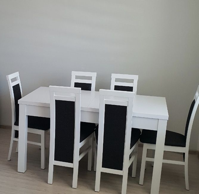 Stół biały rozkładany i 6 krzeseł