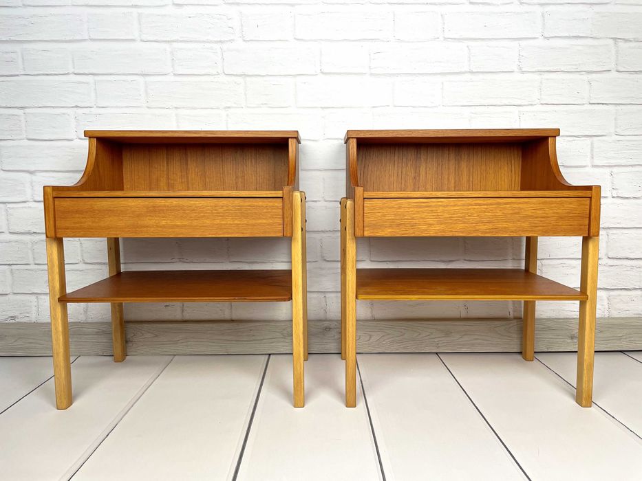 Tekowe szafki nocne, Szwecja, lata 50 – Mid-Century, skandynawski, PRL