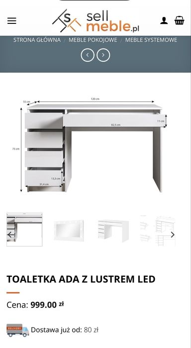 toaletka biala z lustrem
