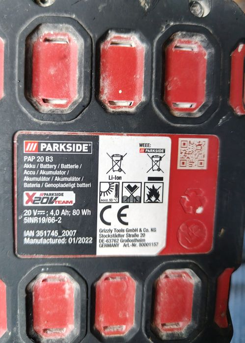 uszkodzona bateria parkside w Osprzęt do narzędzi