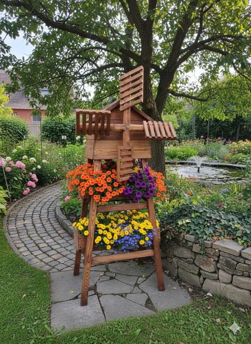 wiatrak ogrodowy drewniany w Architektura ogrodowa