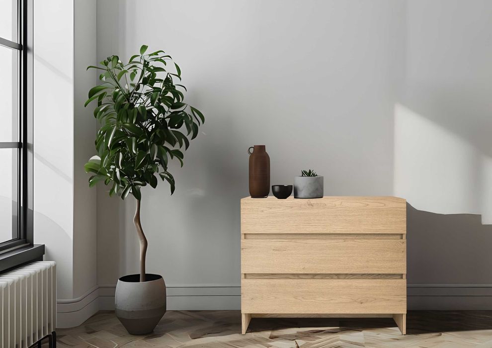 Komoda ESSENZIO dąb Cremona – mała komoda z 3 szufladami