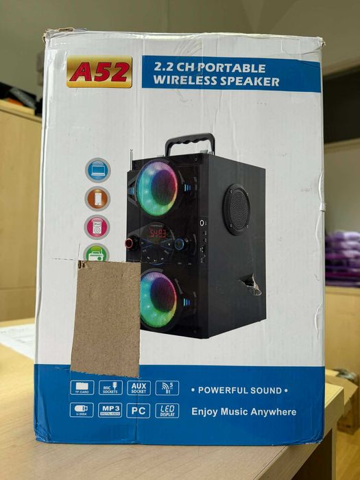 Głośnik przenośny Bluetooth A52 – 2.2CH | LED | Pilot