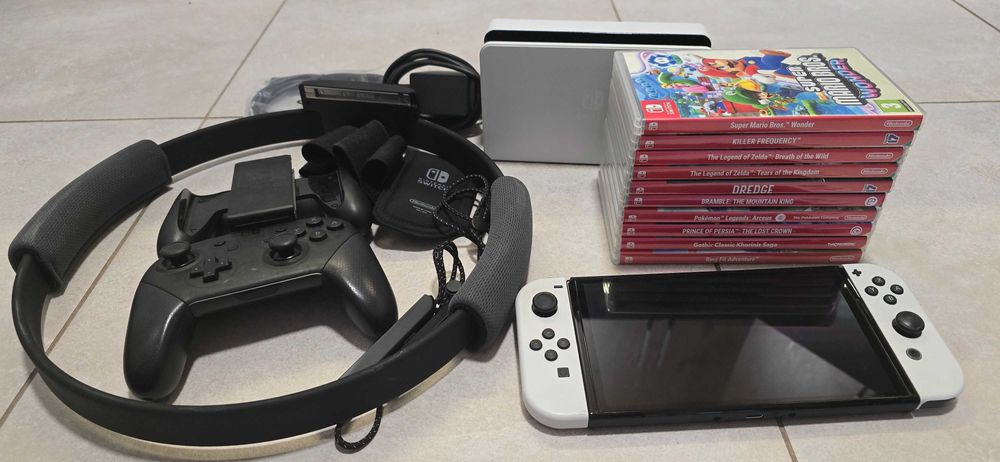 Nintendo Switch OLED + Ring Fit + Pro Controller + 10 gier + 256GB SD