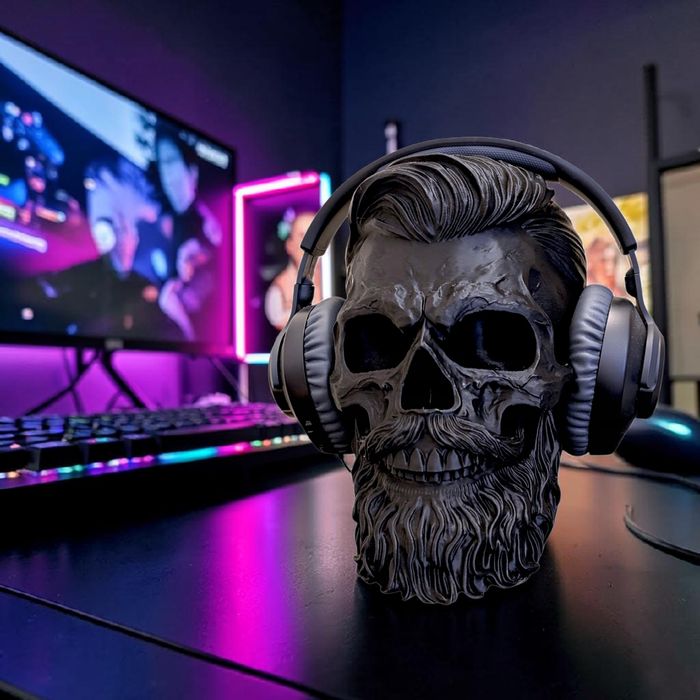 Stojak Uchwyt na Słuchawki CZASZKA z Brodą CZARNY