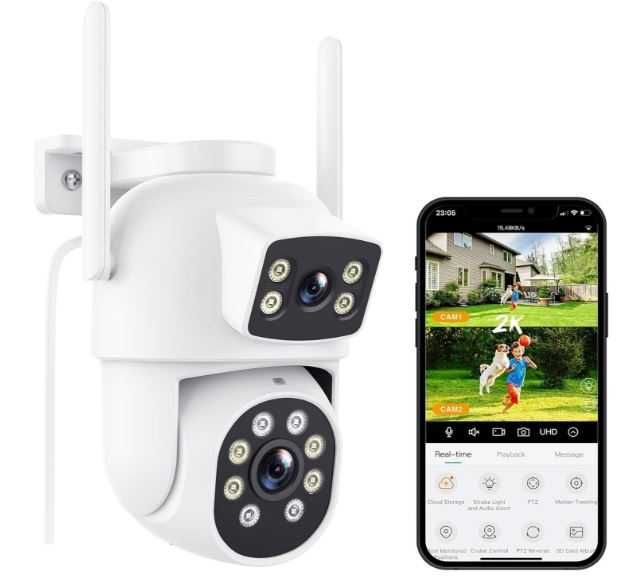 Podwójna kamera 2x3MP 2K, kolor biały Wifi śledzenie ruchu,