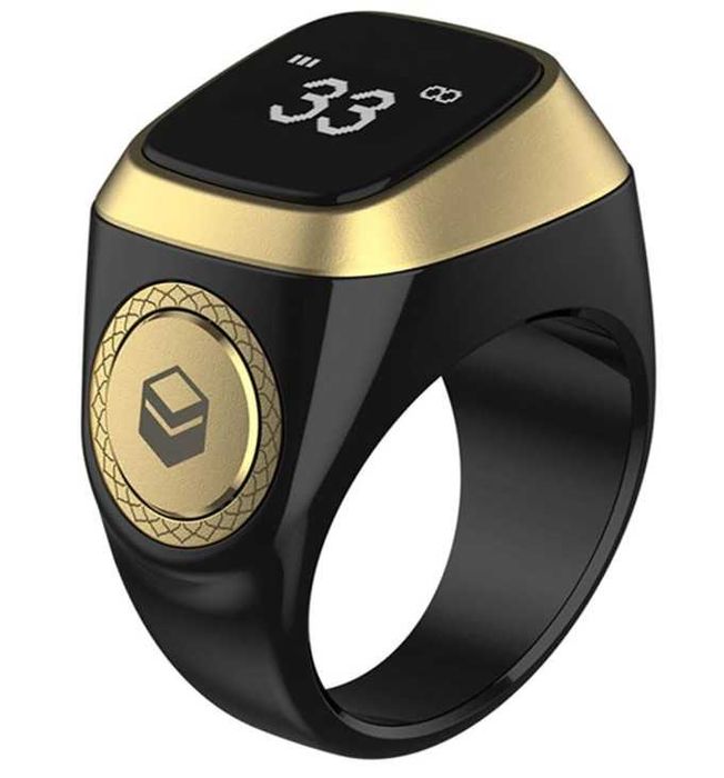 Pierścień, inteligentny, budzik licznik cyfrowy czarno-złoty