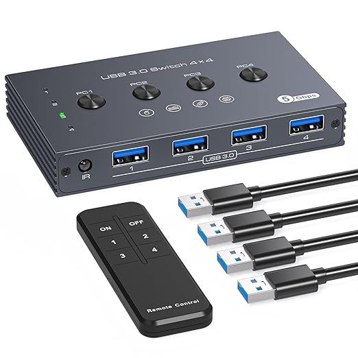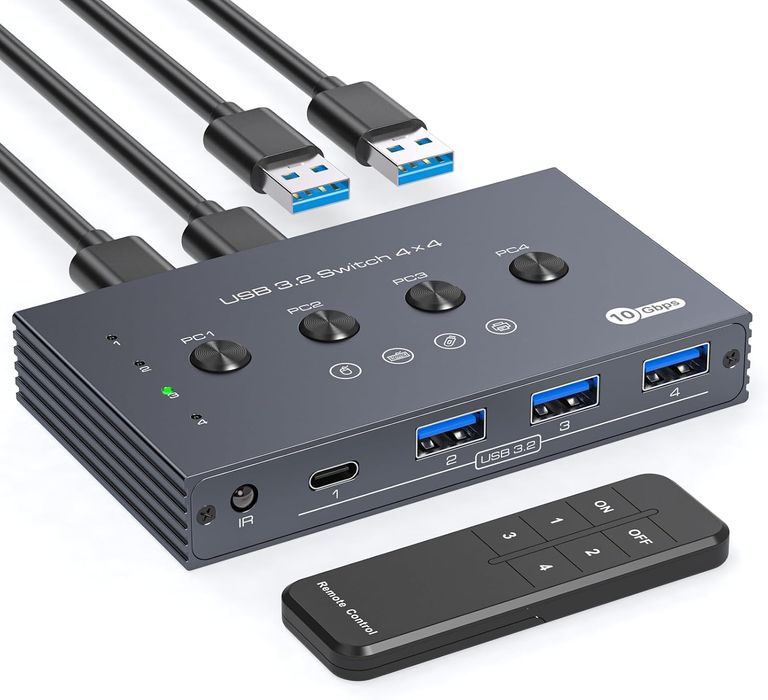 TJCXELE 10Gbps Przełącznik USB 4-portowy z Pilotem i Kabli USB