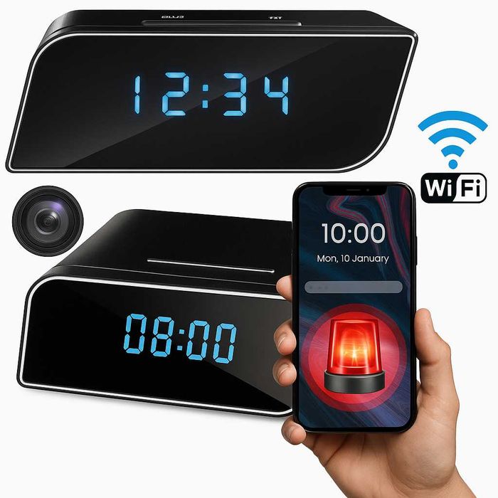 zegar z mini kamerą szpiegowską wifi budzik z kamerą podgląd na żywo