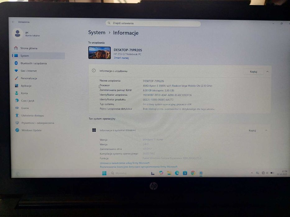 Hp 255 g7 ryzen 5/ 1tb ssd m2/8gb ram/Windows 11/Gwarancja